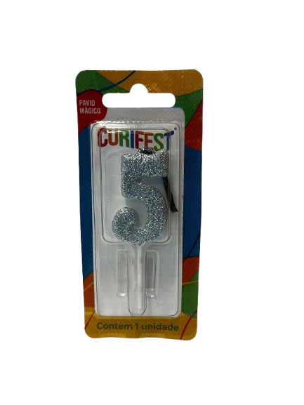 VELA DE ANIVERSÁRIO SINGLE GLITTER PRATA N 5- CURIFEST