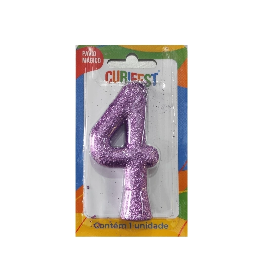 VELA DE ANIVERSÁRIO RENEW GLITTER LILAS N 4 -CURIFEST